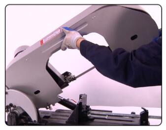 逆時(shí)針轉(zhuǎn)動(dòng)刀片緊固扳手。