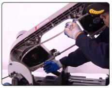注意:在確保刀片在輪子上正常運(yùn)行時(shí),要讓你的身體遠(yuǎn)離刀片區(qū)域。